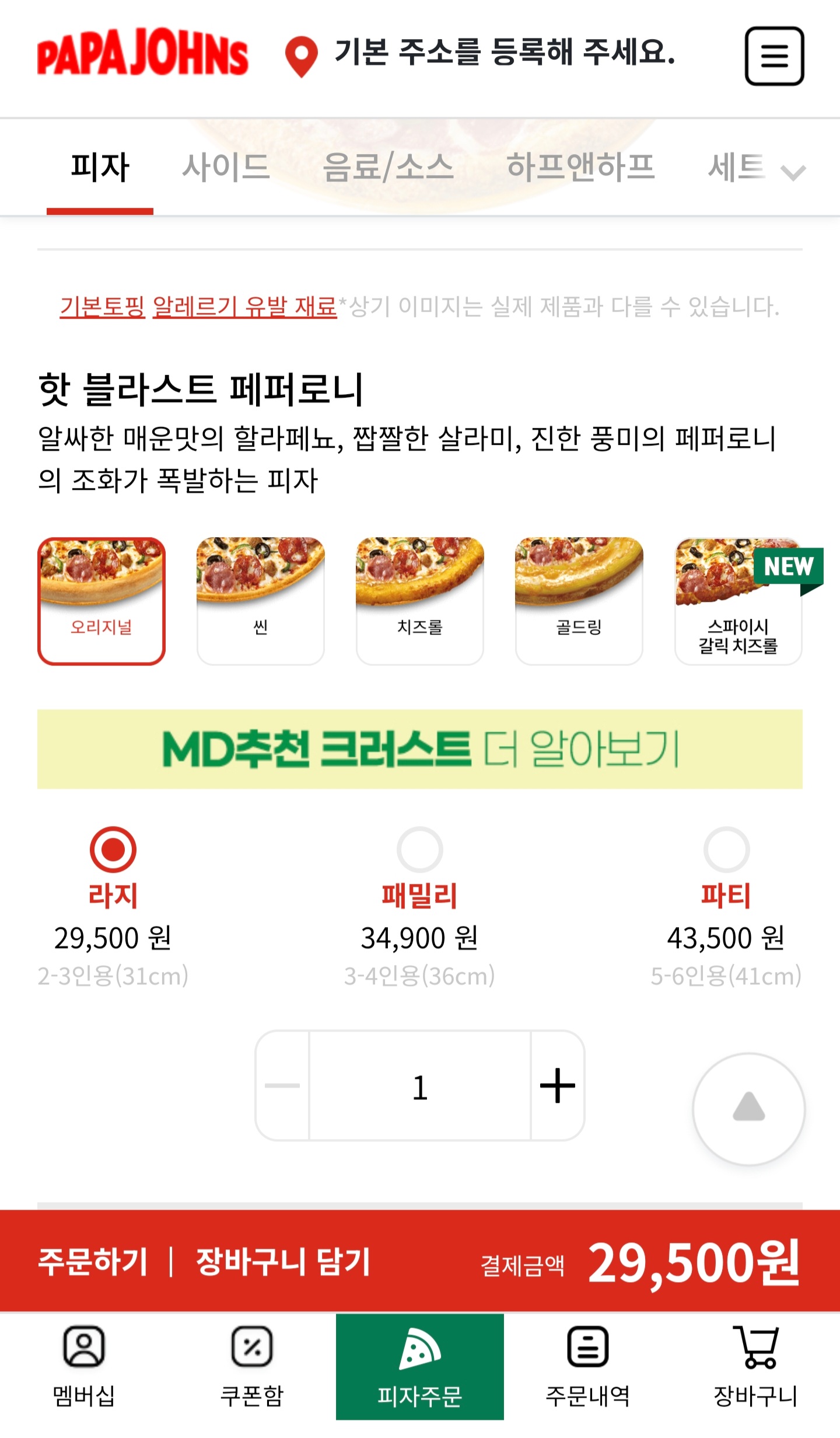 파파존스에서 최애 메뉴는